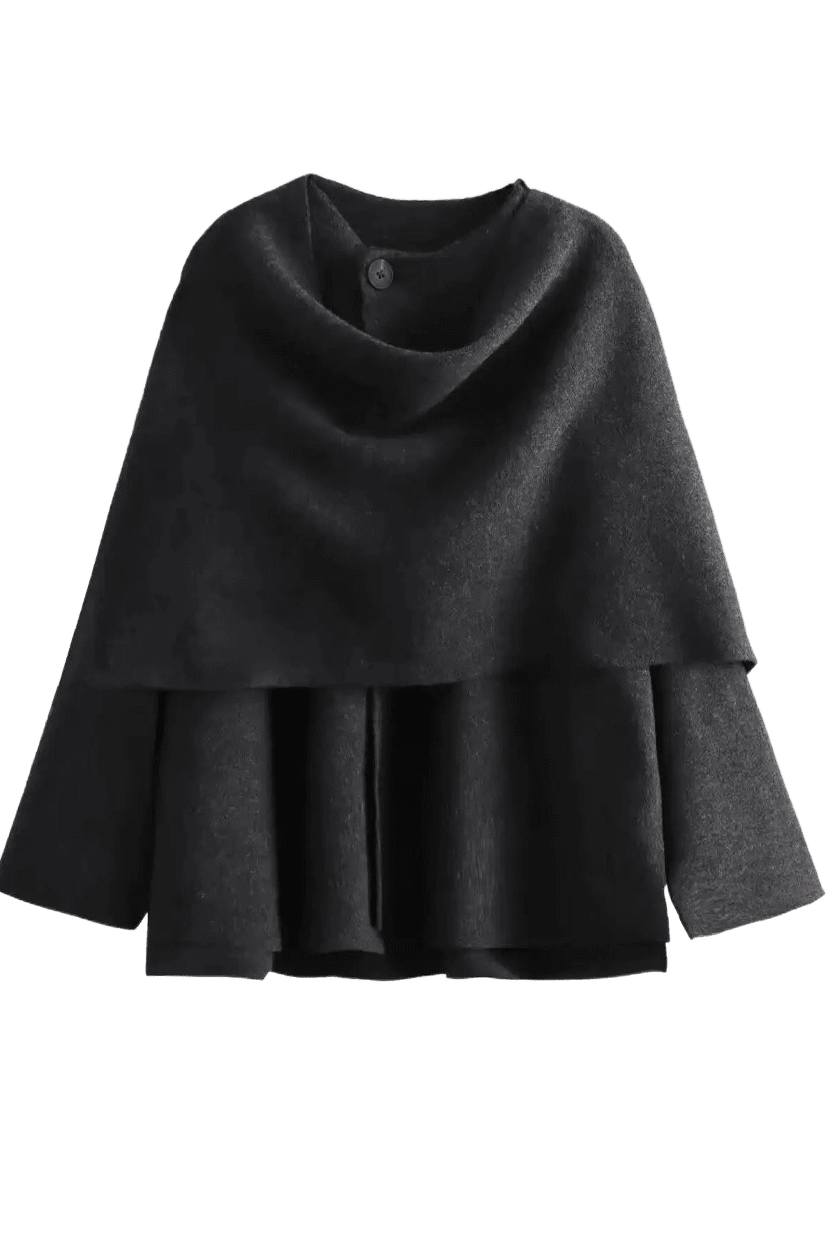Esta chaqueta tipo capa es ideal para la entretiempo o para días de invierno suaves. Combina elegancia relajada y funcionalidad: abriga de forma agradable, resulta ligera y aporta un toque refinado a cualquier look sin el volumen de un abrigo clásico.
